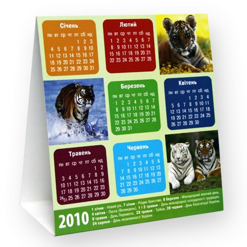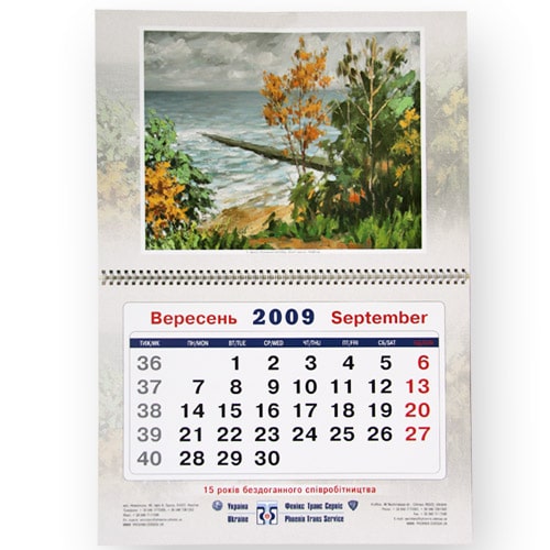 Календарі відносяться до тієї категорії поліграфічної продукції, яка знаходиться у нас перед очима постійно. Чи захоче людина поставити на свій робочий стіл або повісити на стіну календар з логотипом Вашої компанії залежить багато в чому від дизайну календаря. Оригінальний, продуманий до дрібниць календар з вдало підібраними фотографіями або незвичайною графікою відмінно впишеться в будь-який інтер’єр. Висока роздільна здатність фотографій і графічних зображень є обов’язковою умовою для якісного друку календарів. Не варто забувати і про календарну сітку, вона повинна бути зручною і розбірливою, щоб в ній легко і швидко можна було знайти потрібну дату.