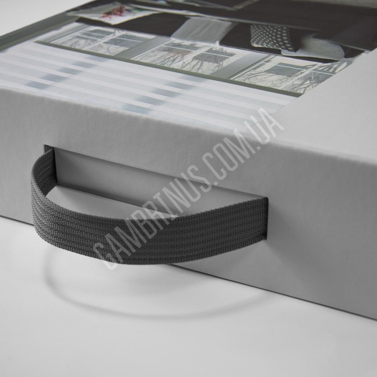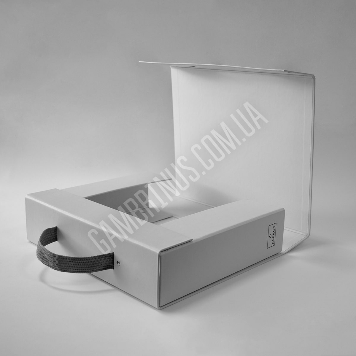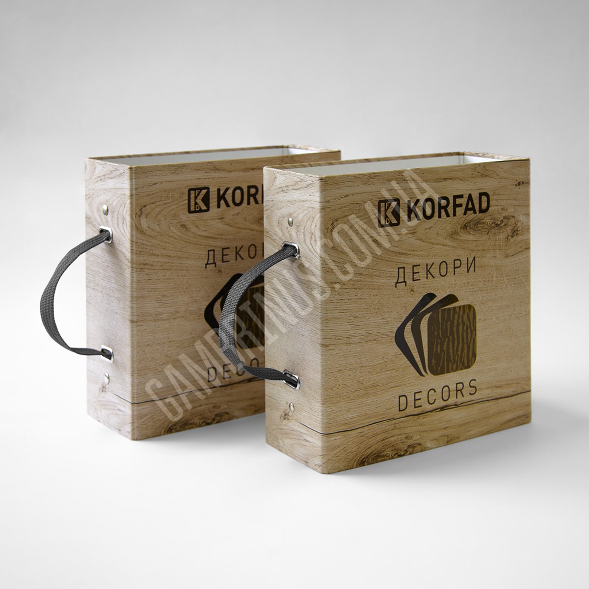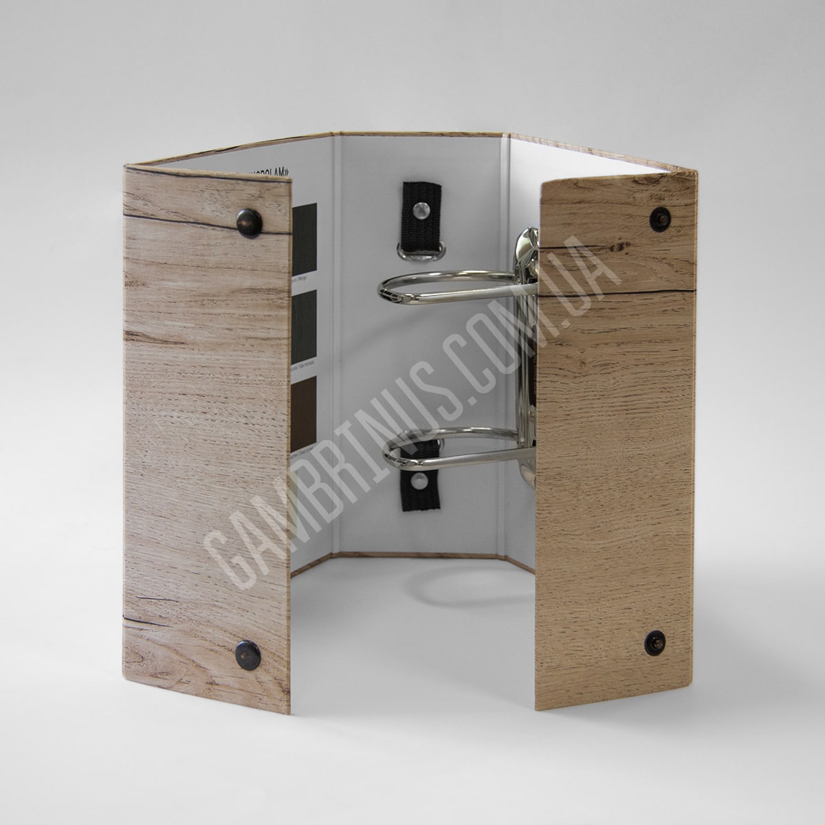 Будь-який з варіантів папок для зразків, що описано вище, можна з легкістю перетворити на так званий портфель зі зразками. Все, що для цього потрібно – це просто встановити на торець папки спеціальну ручку для зручності переноски папки. В такій конструкції липучки, кнопки чи магніти стають вже не опціонними, а обов’язковими елементами портфеля для зразків будівельних та оздоблювальних матеріалів.