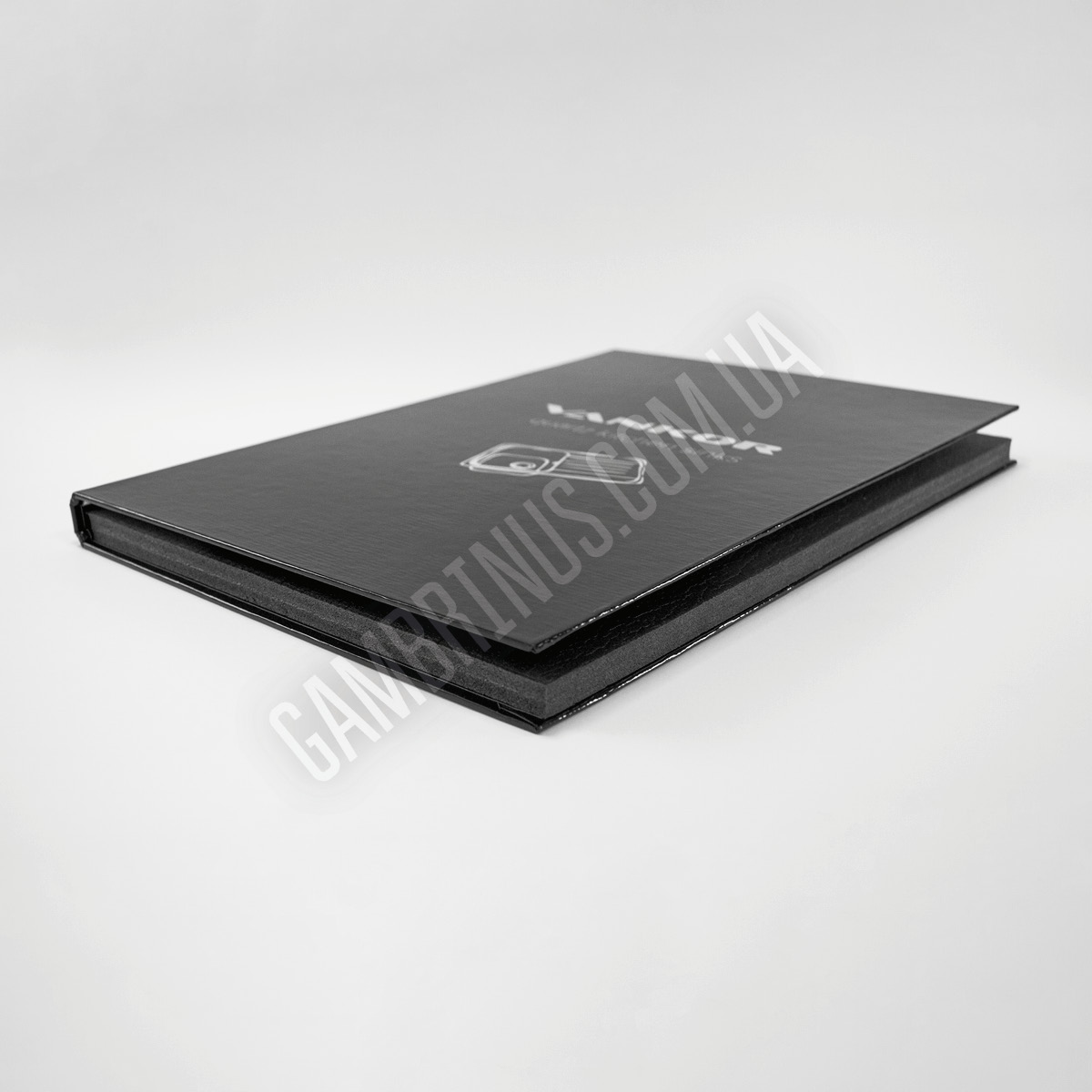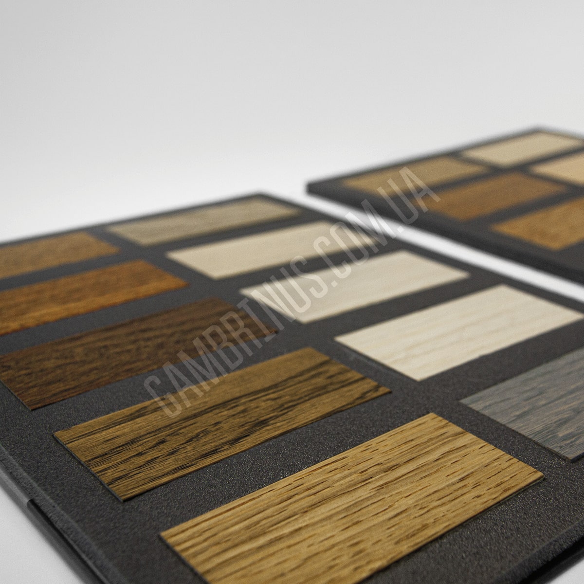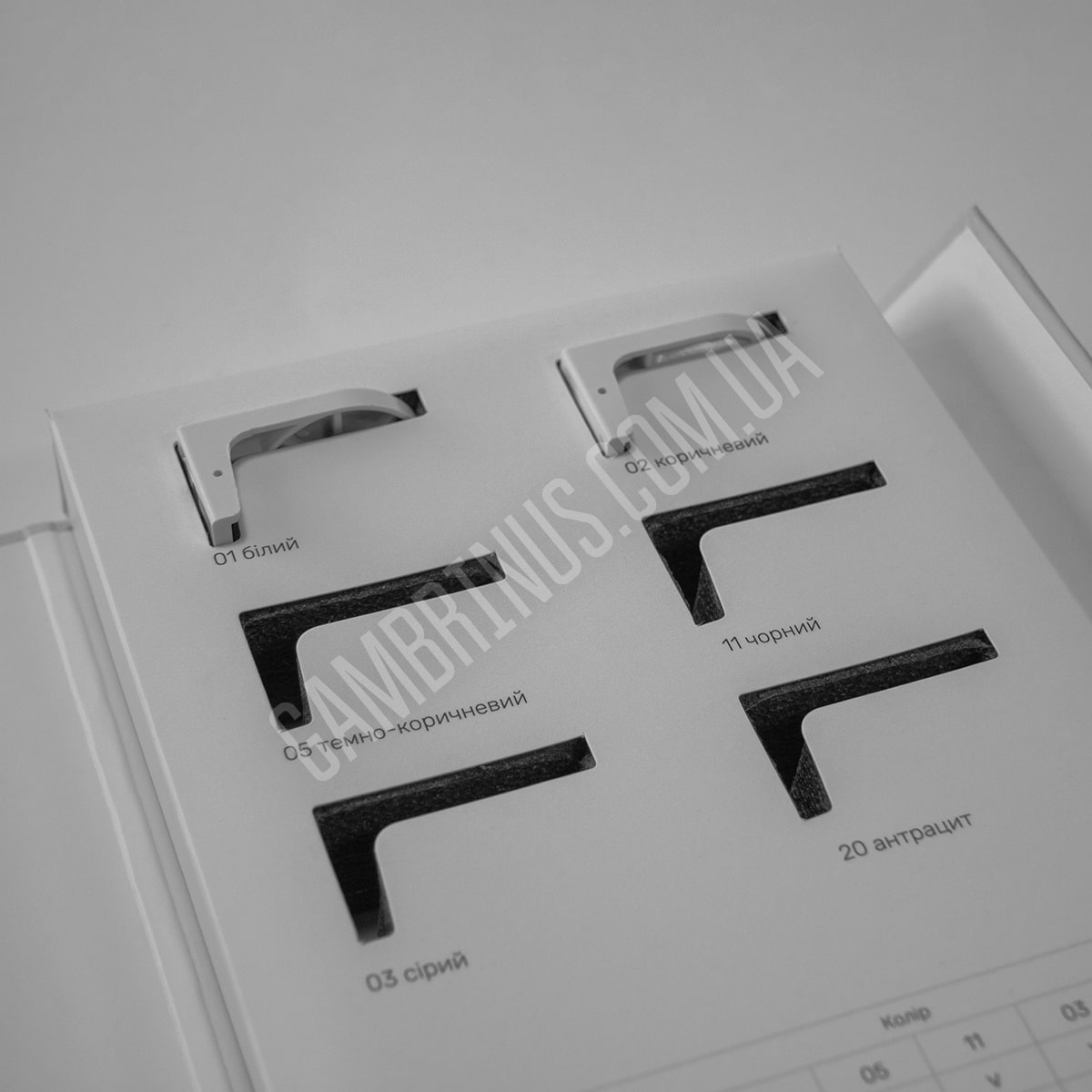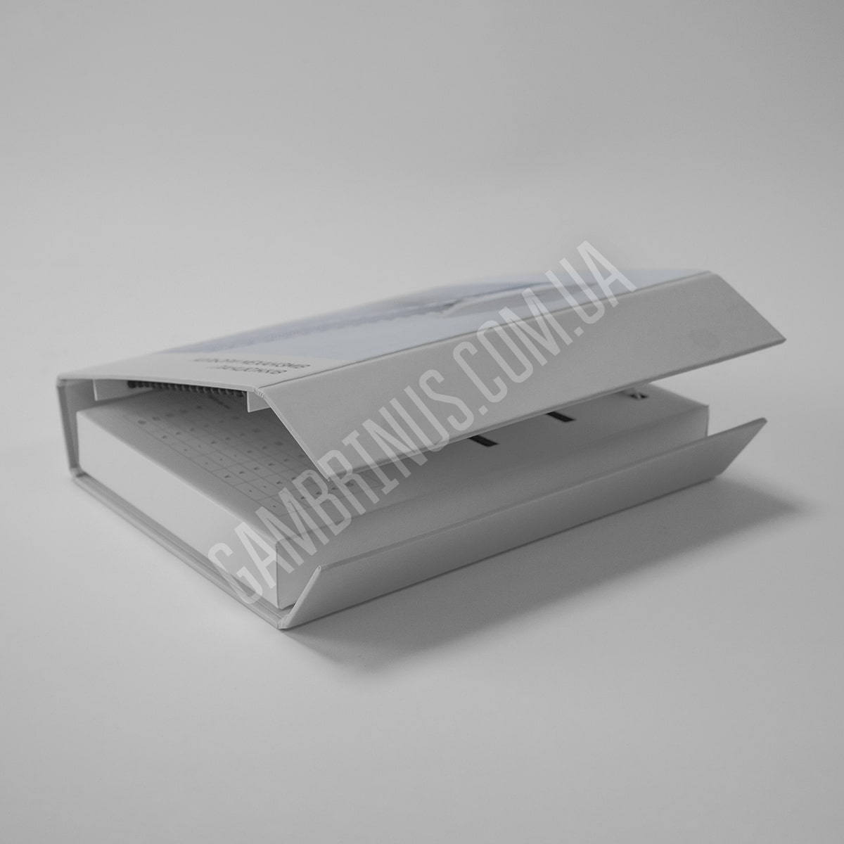 Для багатьох матеріалів варіант приклеювання зразку безпосередньо до папки є неприйнятним. Особливо це стосується об’ємних зразків, які потребують додаткової підтримки та фіксації. Це може бути оздоблювальне каміння, різноманітні профілі та інші будівельні та оздоблювальні матеріали. В таких випадках ми використовуємо ложемент. В якості матеріалу для виробництва ложементу частіше за все виступає ізолон. Ізолон представляє собою пінополіетилен, структура якого складається з ячейок закритого типу і відпрізняється високим рівнем еластичності. В акруші ізолону просікаються “віконця” за розміром і формою підходящі для зразків замовника, часто з виїмкою під палець для зручності вийняття зразку з ложементу. Після цього ложемент з вже висіченими віконцями вклеюють у готову папку та наступає момент вкладання зразків. Вкласти зразки в папки можемо ми, але й замовник, за бажанням, може здійснити це своїми силами. Плюс такої конструкції папки для зразків будівельних та оздоблювальних матеріалів в тому, що, за необхідності, зразок можна вийняти з папки. Є й інша особливість. При виборі такої конструкції папки з використанням ложементу зразки, зазвичай, не маркерують взагалі, або приклеюють наліпки з маркуванням безпосередньо на зразки, тому що на ізолоні така інформація не друкується.